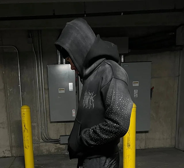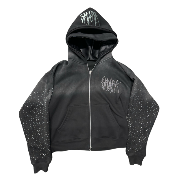 Double hooded SHARK Zip Up- BLACK